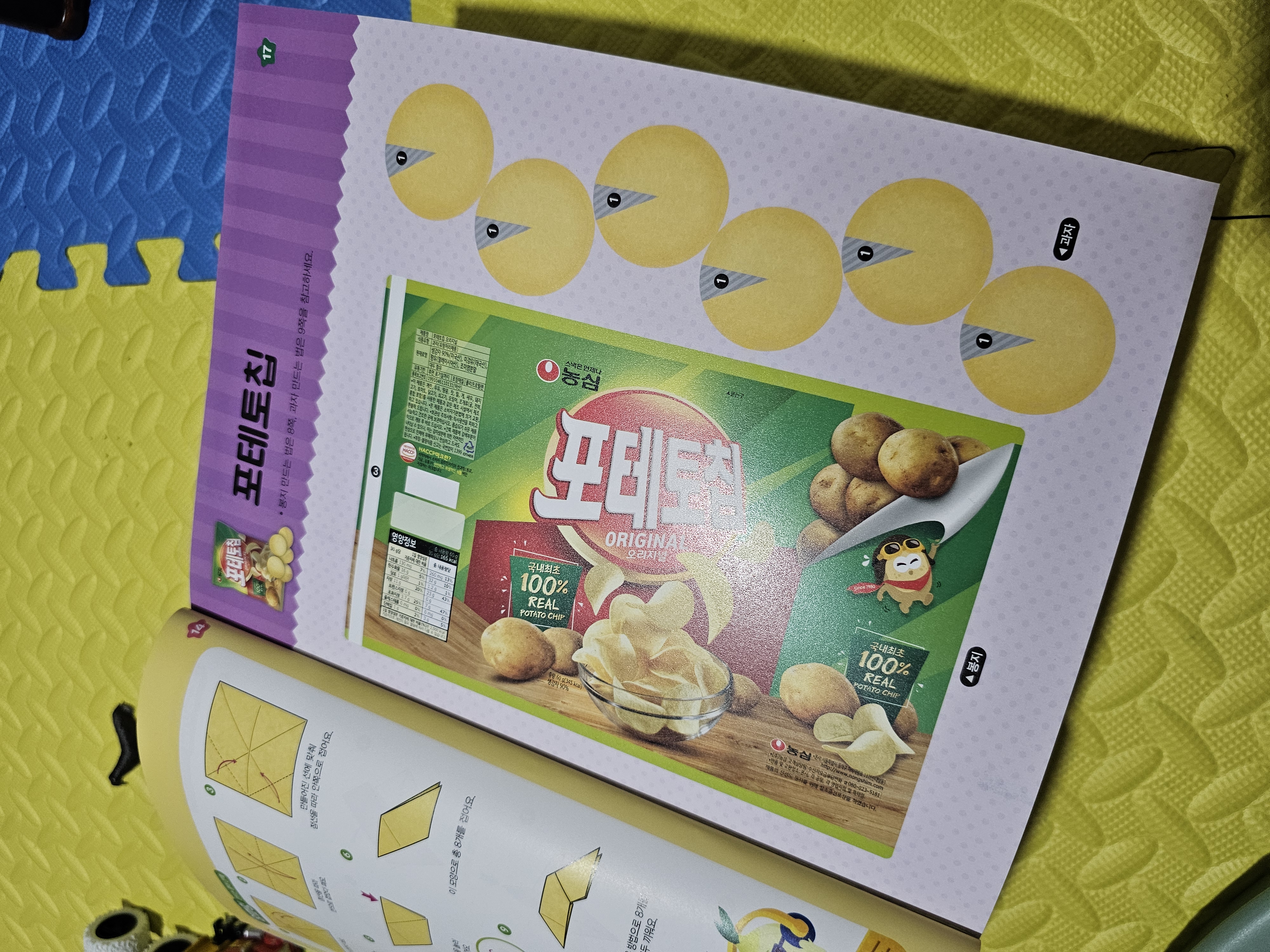애플비 출판사의 '대한민국 대표 과자 도전! 진짜 과자 접기'라는 종이접기 서적이 있습니다. 이 책은 새우깡, 포테토칩, 빼빼로, 마가렛트, 스크류바 등 한국의 대표적인 과자와 아이스크림 23종을 실제와 유사한 미니어처 형태로 만들 수 있도록 구성되어 있습니다. 각 과자의 봉지나 상자뿐만 아니라 그 안에 들어가는 과자까지도 종이로 접어 만들 수 있어, 아이들이 소근육 발달과 두뇌 발달에 도움을 주며, 집중력과 창의력을 키울 수 있습니다.