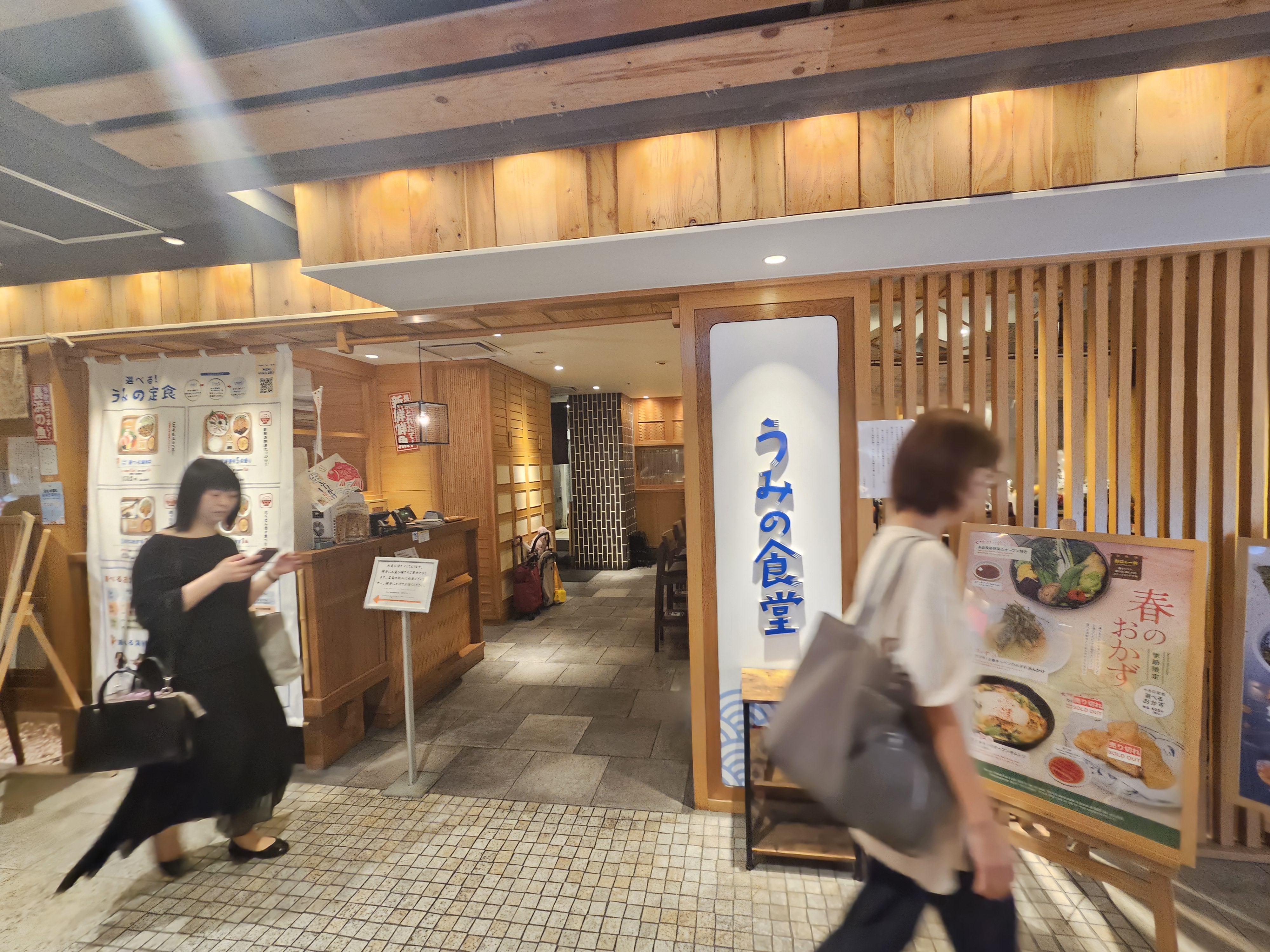 4. “함바그 식당(ハンバーグ)”을 기준으로 왼쪽 끝으로 내려가듯이 걷다 보면, 조용히 숨어 있는 "우미노쇼쿠도"가 나옵니다!